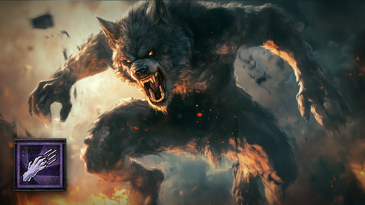 Du verwandelst dich in einen Werwolf und schlägst deine Krallen in einen Gegner, um X% Schaden zu verursachen.